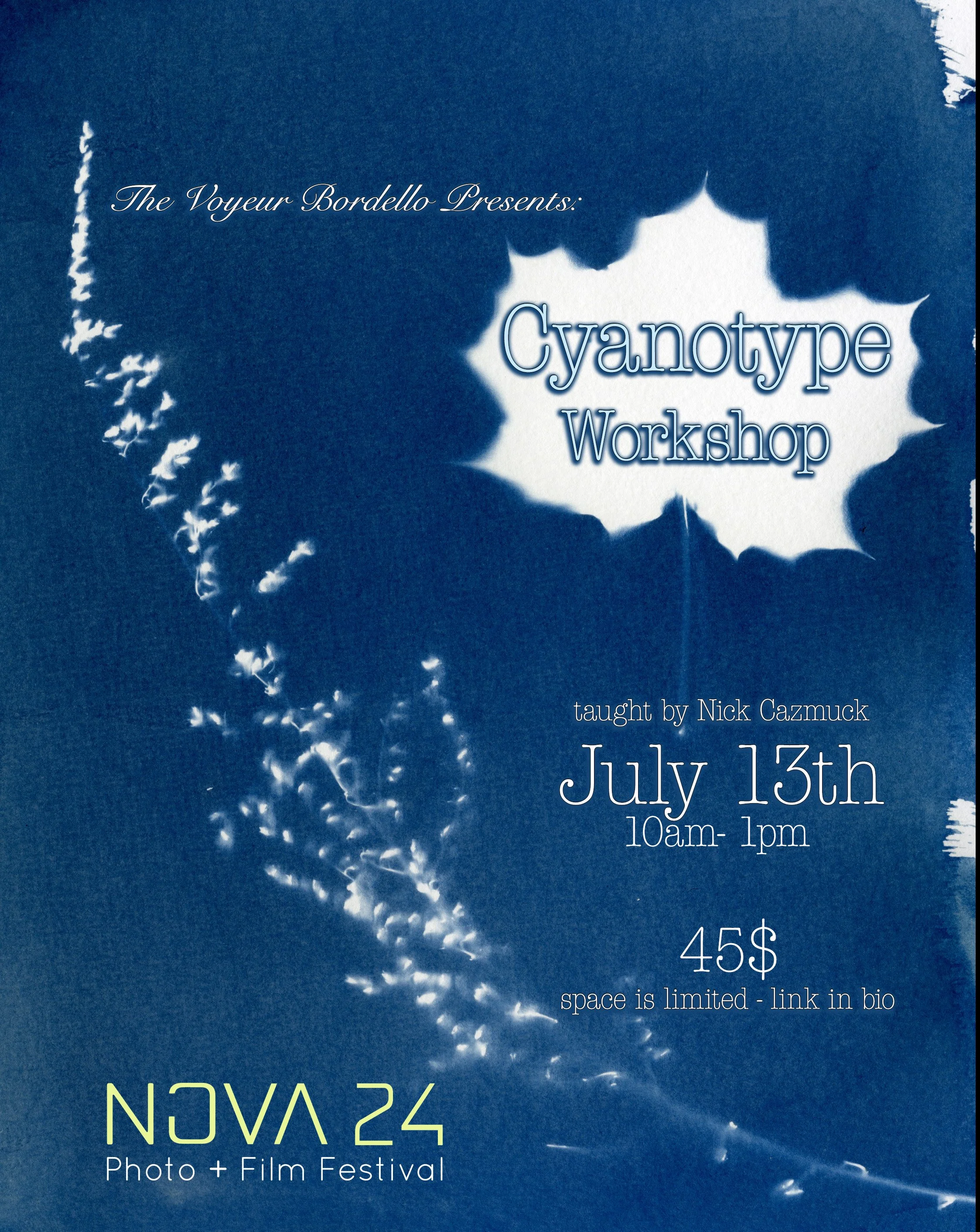 All materials will be provided, and you’ll leave with your own unique cyanotype prints, ready to display. Whether you’re an artist, photographer, or curious creative, this is a fun and experimental way to explore alternative photography.